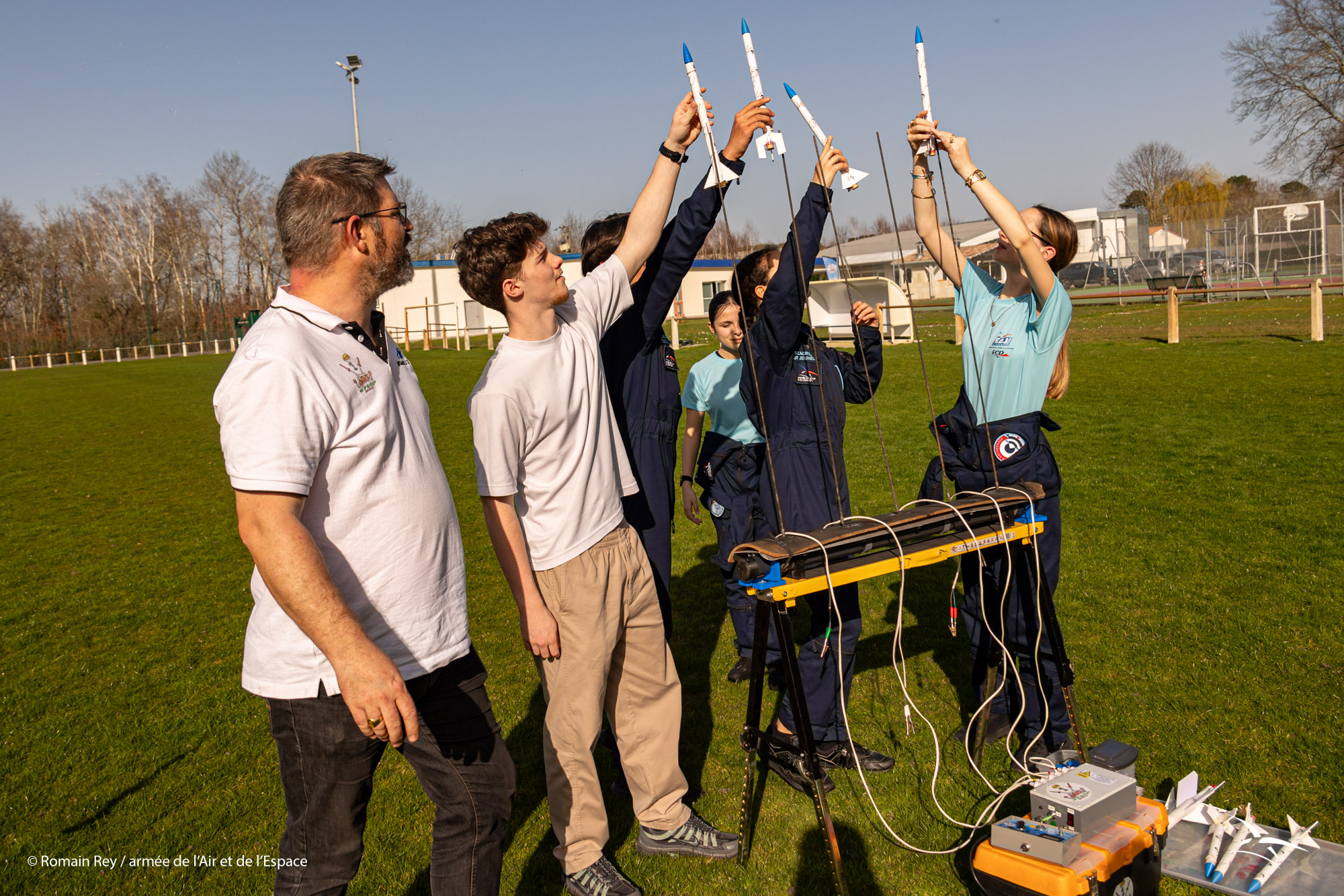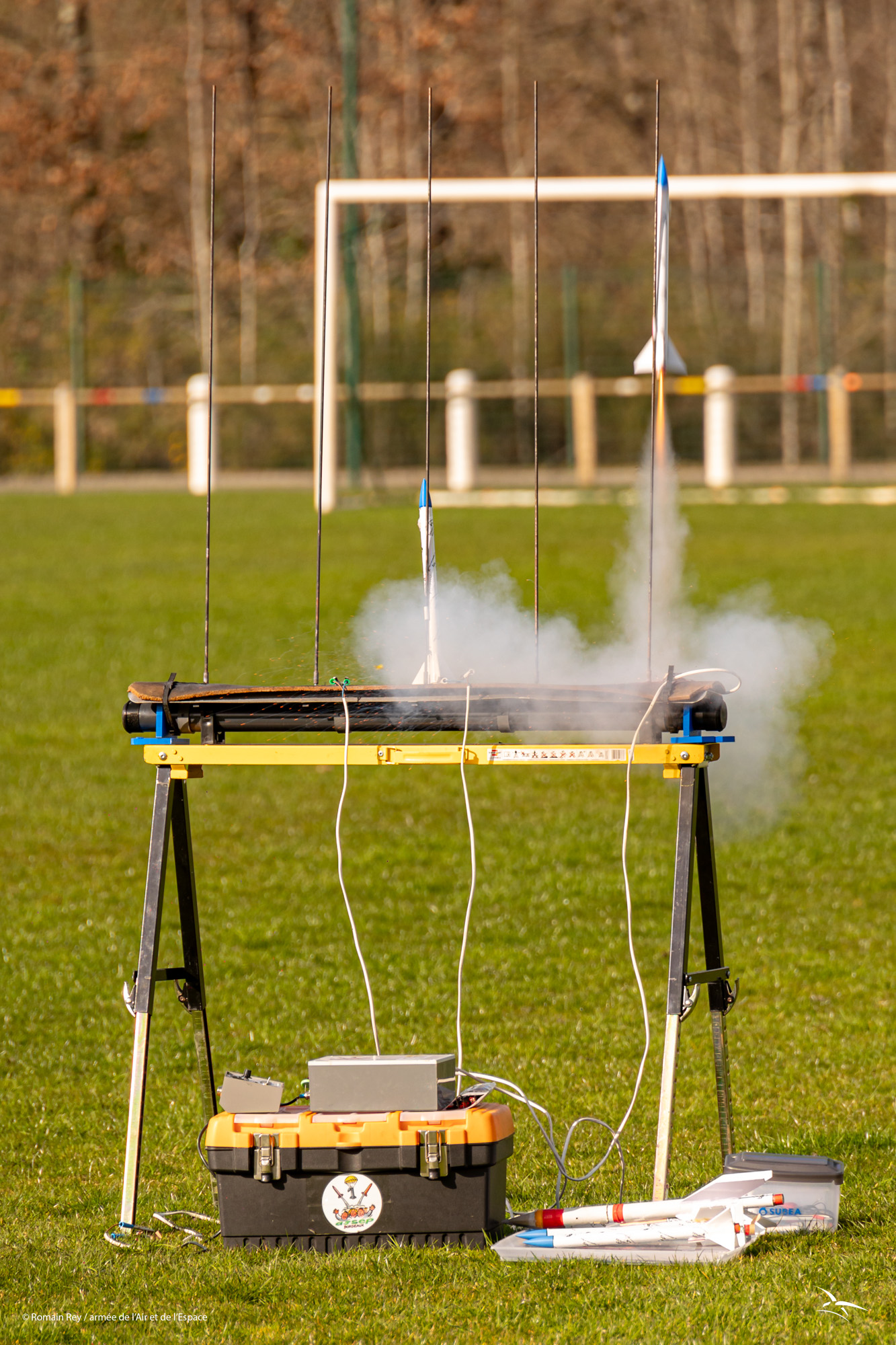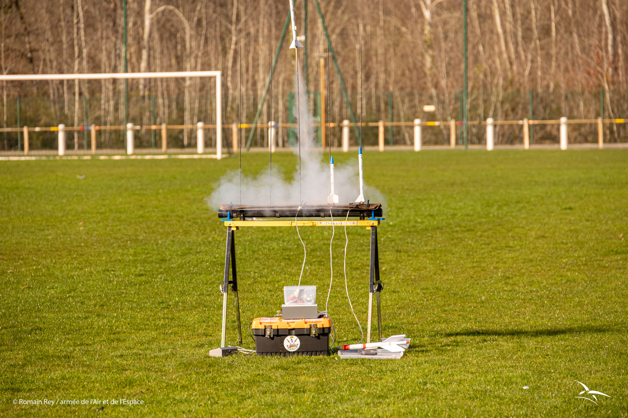 Les « Equipiers » de l’EAJ sont venus tester leurs fusées construites il y a quelques semaines.